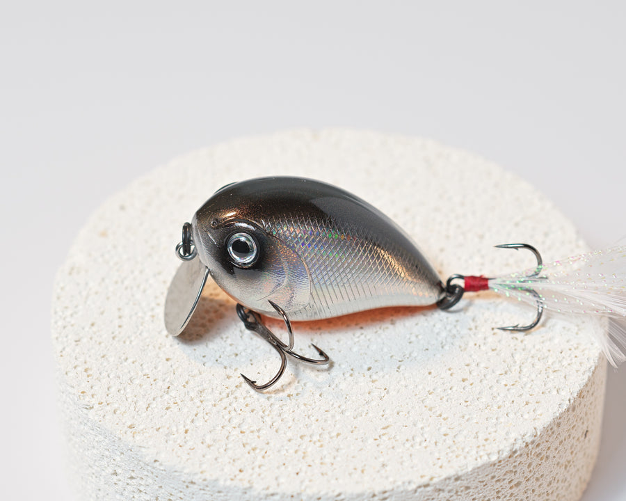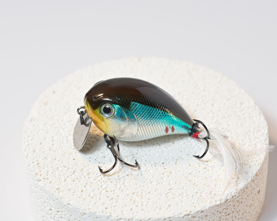 The Lureholic Bull Shot Crankbait is a finely engineered ultra-shallow (0.2m) lure featuring tungsten steel rattle beads. It boasts a premium lacquer finish and delivers a tight, erratic wobbling action, a robust metal lip, a top-quality Mustad hook for secure hookups, an aggressive sonic sound from the tungsten ball, and an irresistible feather hook that entices more bites.