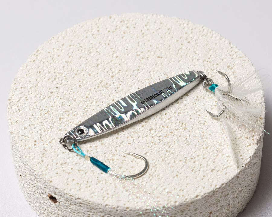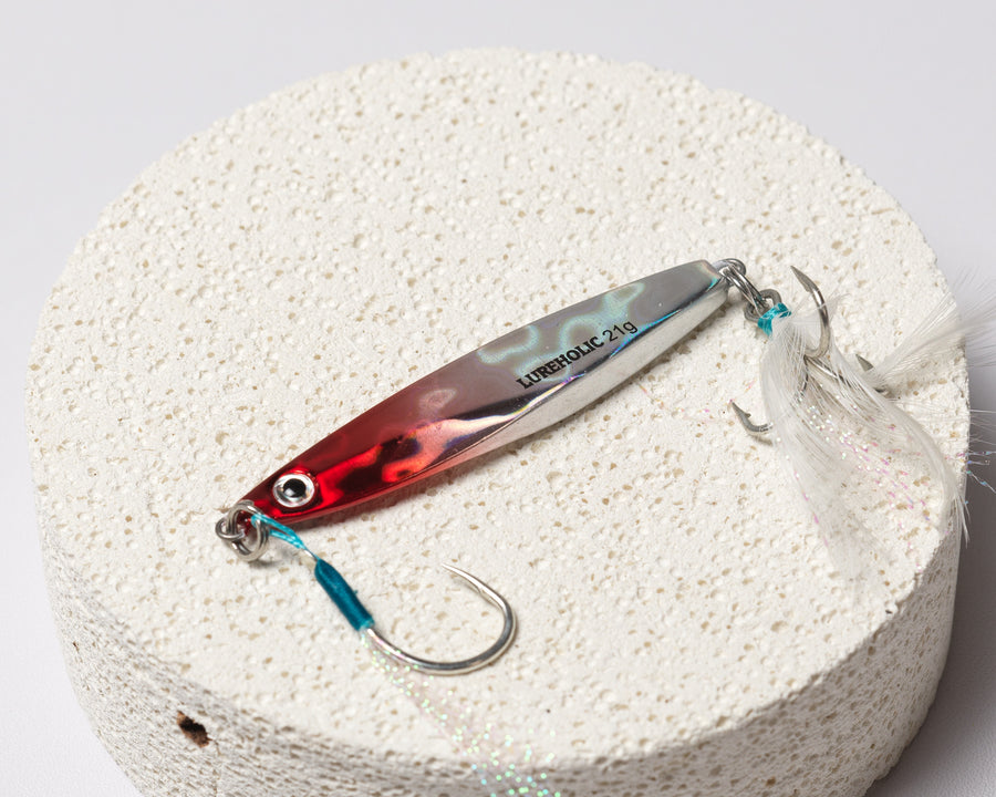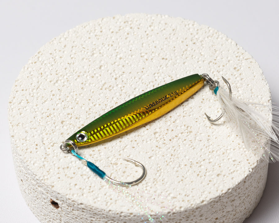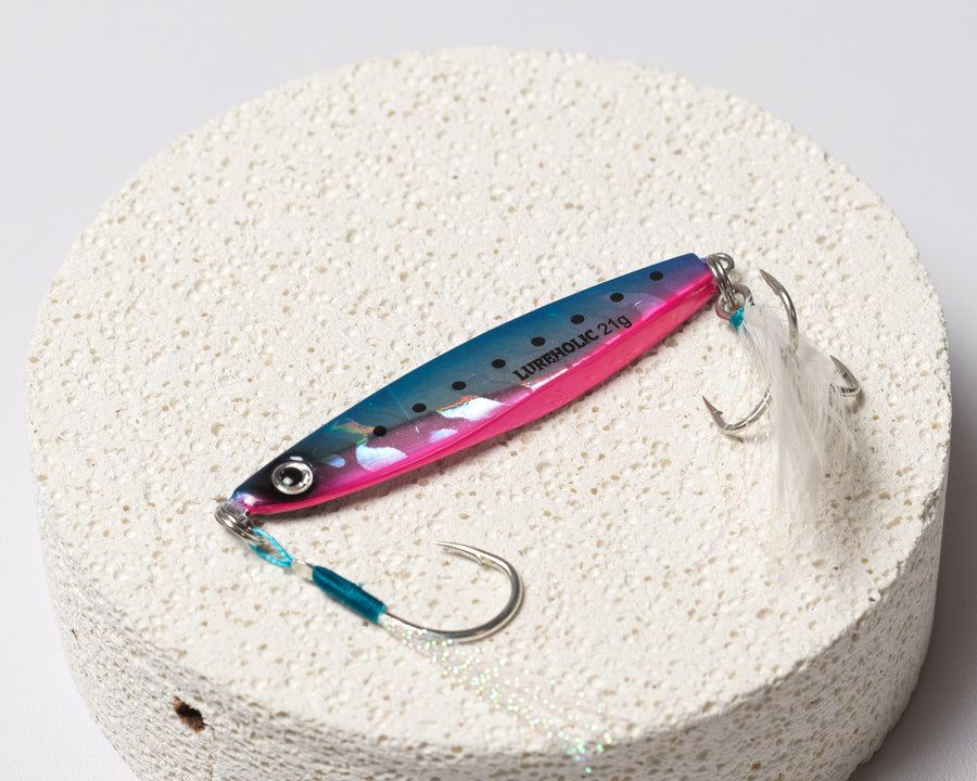 The Lureholic Flat Cut Blade Metal Jigs are exquisitely crafted, versatile lures designed for long-distance casting. Featuring MURATA holographic foil made in Japan, these jigs reflect an enchanting shine on their surface that captivates fish underwater. They also utilize BKK single-hook and triple-hook configurations, ensuring top-notch quality and minimizing the risk of fish escaping. Moreover, these jigs come in the Flat Cut Blade design that emphasizes a enhanced falling swimming action, providing vivid dynamics under the water.