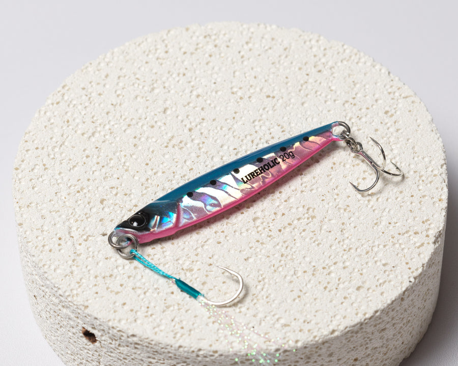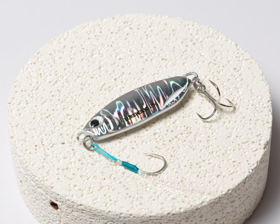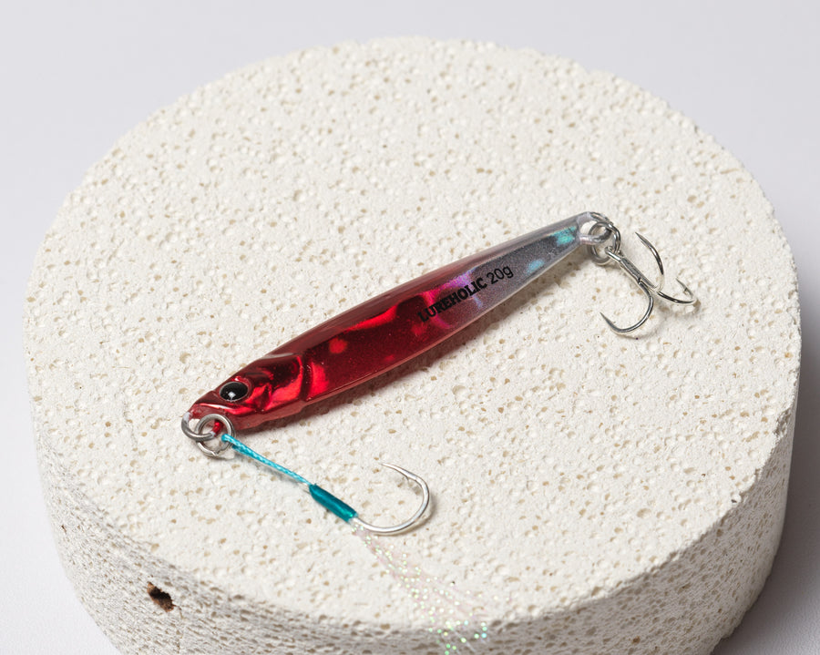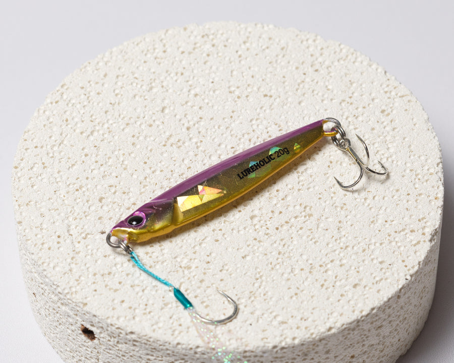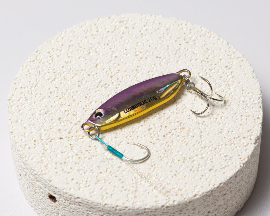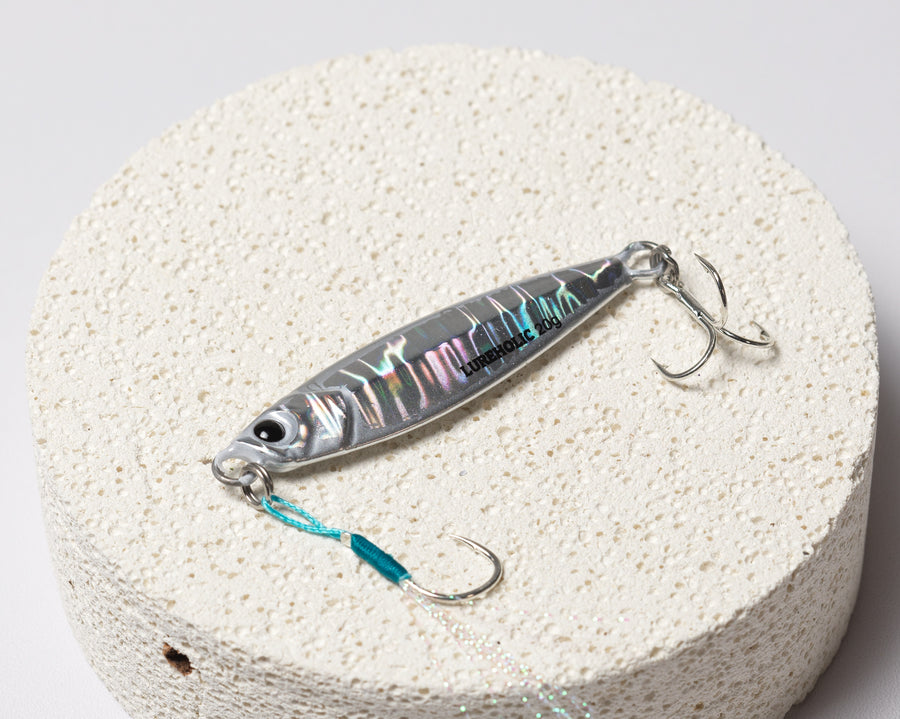 The Lureholic Metal Jigs are exquisitely crafted, versatile lures designed for long-distance casting. Featuring MURATA holographic foil made in Japan, these jigs reflect an enchanting shine on their surface that captivates fish underwater. They also utilize BKK single-hook and triple-hook configurations, ensuring top-notch quality and minimizing the risk of fish escaping. Moreover, these jigs come in a variety of designs to meet different needs: the Speed Blade emphasizes turbulence for a falling swimming action, the Sharp Blade enhances the falling motion, the Torpedo exhibits a trembling, swaying style, the Demon Snake mimics an S-shaped, snake-like movement, and the Submarine further reinforces turbulence—all tailored to perform in complex environments.