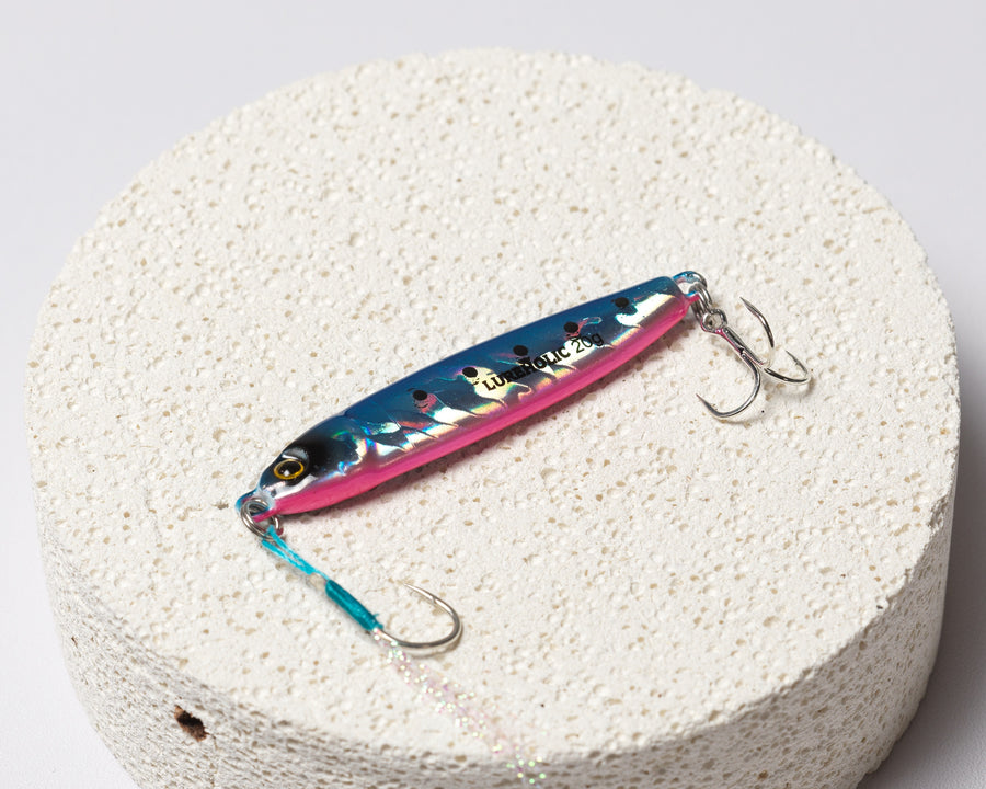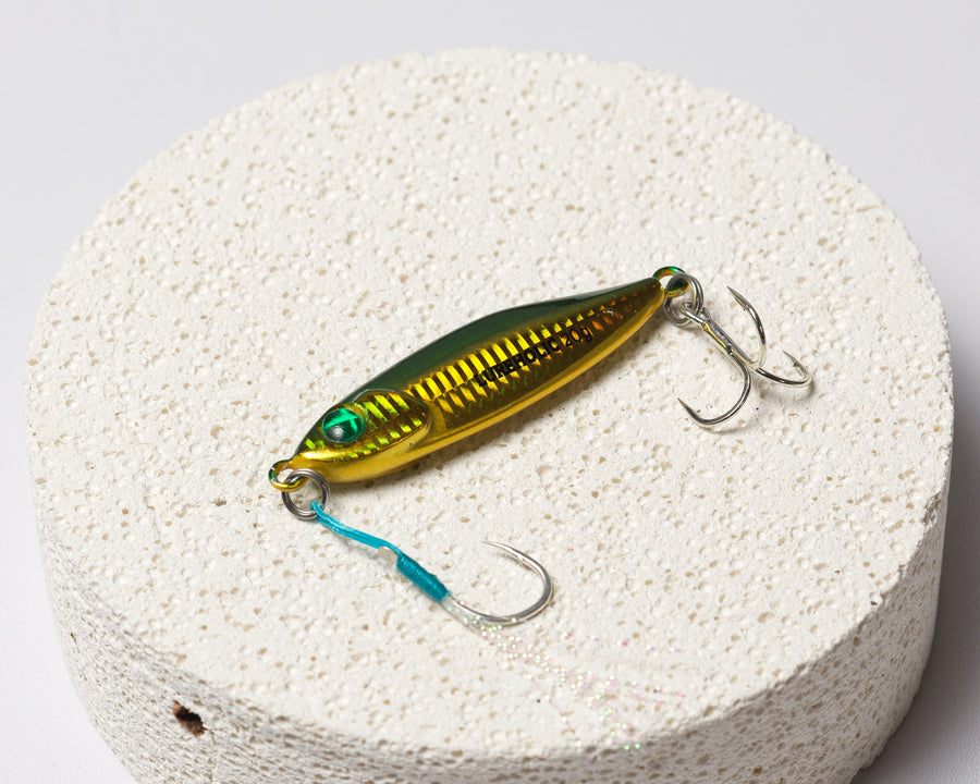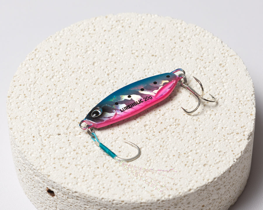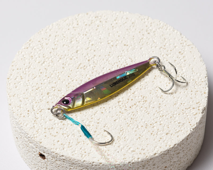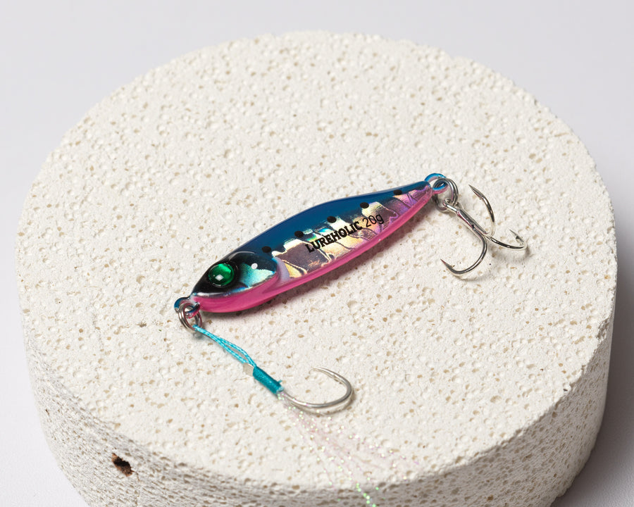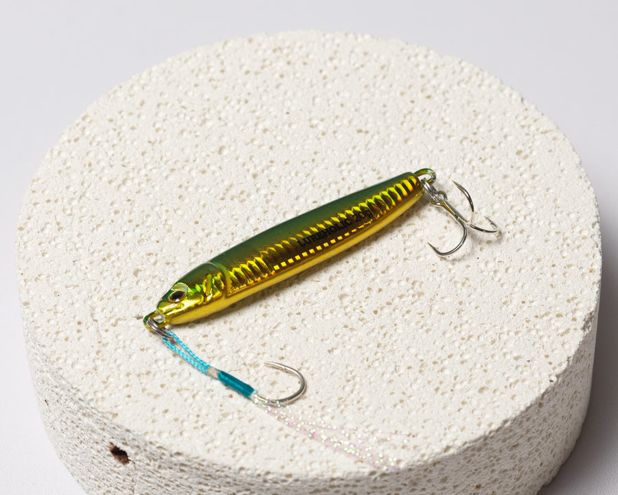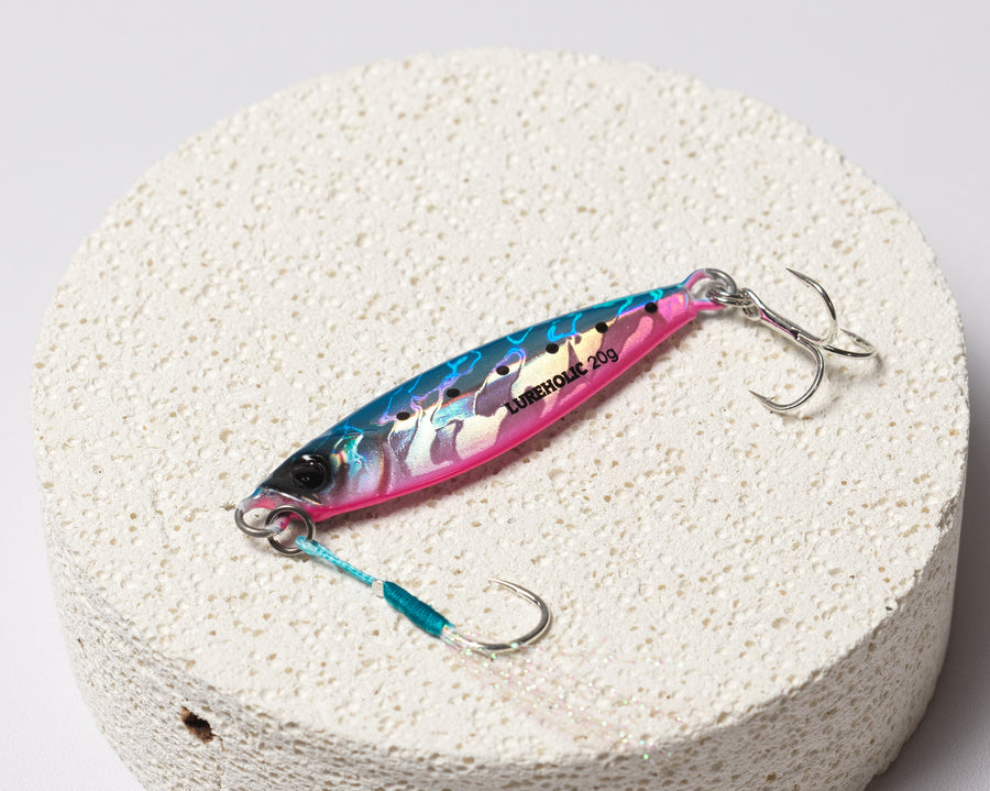 The Lureholic Metal Jigs are exquisitely crafted, versatile lures designed for long-distance casting. Featuring MURATA holographic foil made in Japan, these jigs reflect an enchanting shine on their surface that captivates fish underwater. They also utilize BKK single-hook and triple-hook configurations, ensuring top-notch quality and minimizing the risk of fish escaping. Moreover, these jigs come in a variety of designs to meet different needs: the Speed Blade emphasizes turbulence for a falling swimming action, the Sharp Blade enhances the falling motion, the Torpedo exhibits a trembling, swaying style, the Demon Snake mimics an S-shaped, snake-like movement, and the Submarine further reinforces turbulence—all tailored to perform in complex environments.