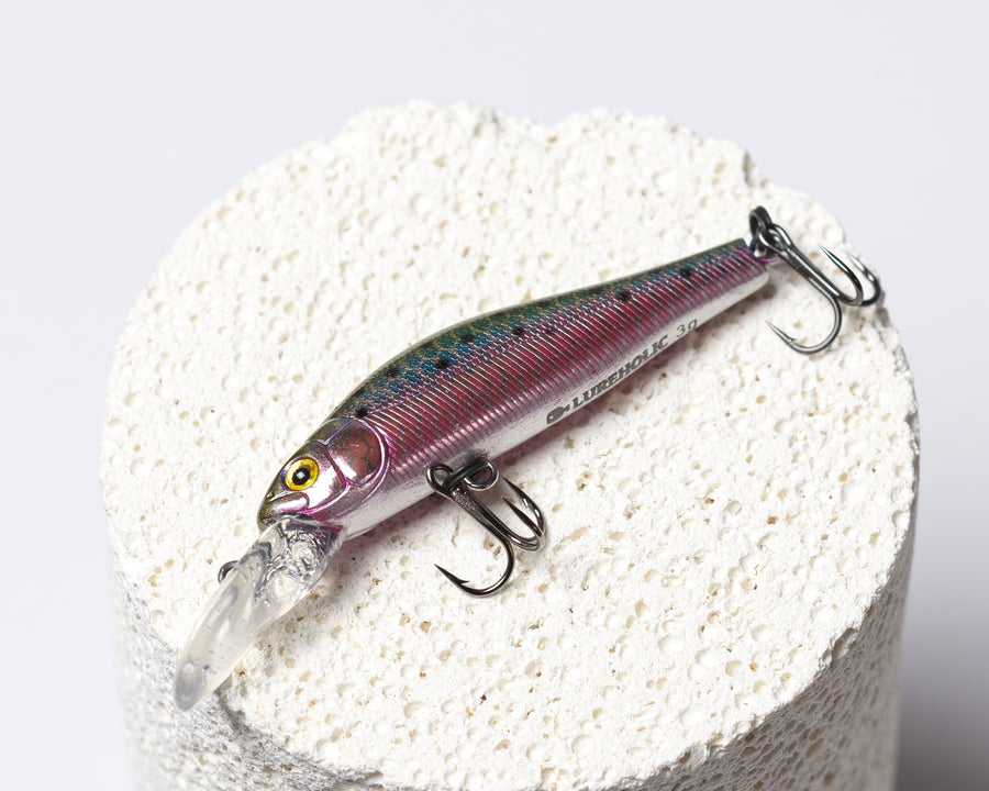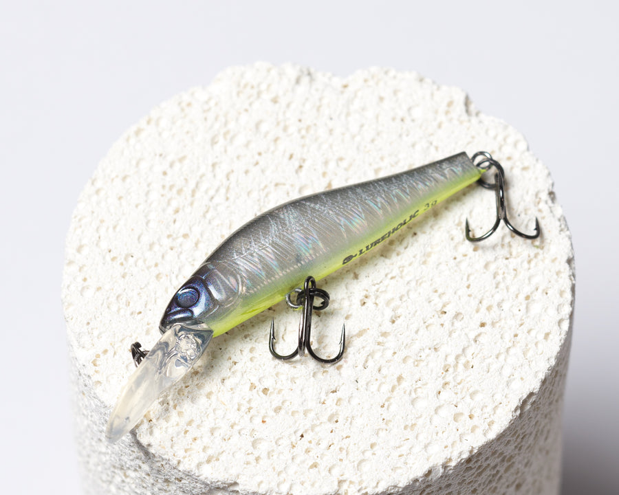 The Lureholic Staredown Suspending Jerkbait is meticulously crafted. Its unique pattern design and exquisite lacquer finish give it an elegant appearance. This lure is equipped with Norwegian Mustad hooks and contains two rolling balls. Through its jerking, suspending action, it can trigger bass strikes even in low water temperature and low activity conditions, delivering an extraordinary lure experience.