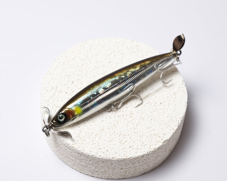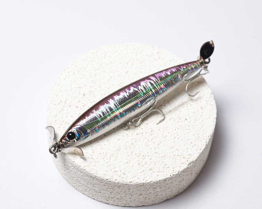 The Lureholic Topwater Twin-Propeller Stickbait is a meticulously crafted floating pencil lure. It features a smooth, glossy finish, contains a rolling ball mechanism, and is paired with Norwegian Mustad hooks, delivering an unparalleled fishing experience.