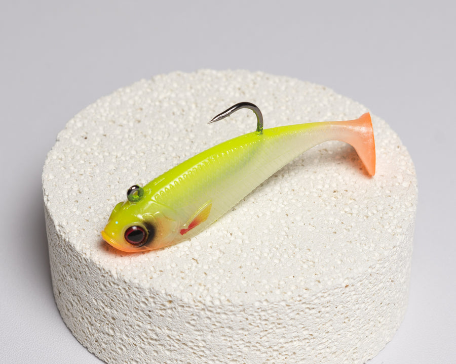 The TRUSCEND Shaking Carp is a well-crafted, pre-rigged soft fishing lure. It features a unique, streamlined body design that closely mimics a real fish, paired with a high-frequency T-tail for extra-enticing movement. Outfitted with Japan-imported OWNER triple-strength hooks, it delivers powerful pulling force and sharp penetration to prevent fish from escaping. Its master-level paintwork sets it apart, while the Japanese-imported, biodegradable PVC material is soft, odorless, benzene-free, and eco-friendly.